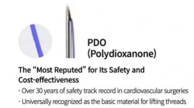 PDO源自1970年代外科縫合線,在心血管手術領域擁有超過30年的安全紀錄。材質具高生物相容性與可完全吸收性,能在體內水解分解為二氧化碳與水。結構上多為單股倒鉤線(Cog)或螺旋線(Screw),可即時提拉並刺激膠原增生,通過美國FDA與歐盟CE雙重認證,被廣泛認可為埋線拉提的經典線材。