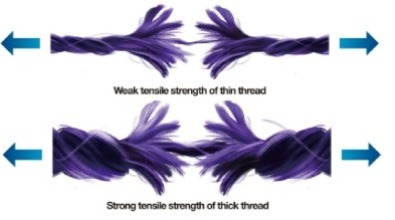 線材的粗細(直徑)與抗拉強度呈正相關,越粗的線可以承受越大的拉力,不容易因為張力過大而斷裂或變形,可以更好的拉提下顎線、嘴邊肉等區域,因為這些部位的活動性強,需要更高的支撐力與穩定性。但並不是線越粗越好,越粗的線會增加植入的阻力與異物感,影響皮膚表層自然度,如何適當挑選就考驗了醫師的專業及經驗判斷。