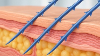 在現代埋線拉提中,提拉效果並非僅取決於線材數量,而是來自與SMAS筋膜層之間的結構互動,包括:線體的粗細、倒鉤設計(單向/雙向)、倒鉤密度與排列方向等,都會直接影響到埋線拉提的抗拉強度、牽引力與維持力(Holding Power)。